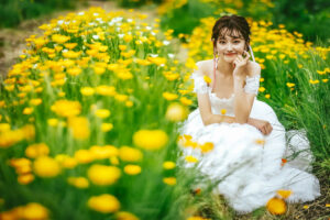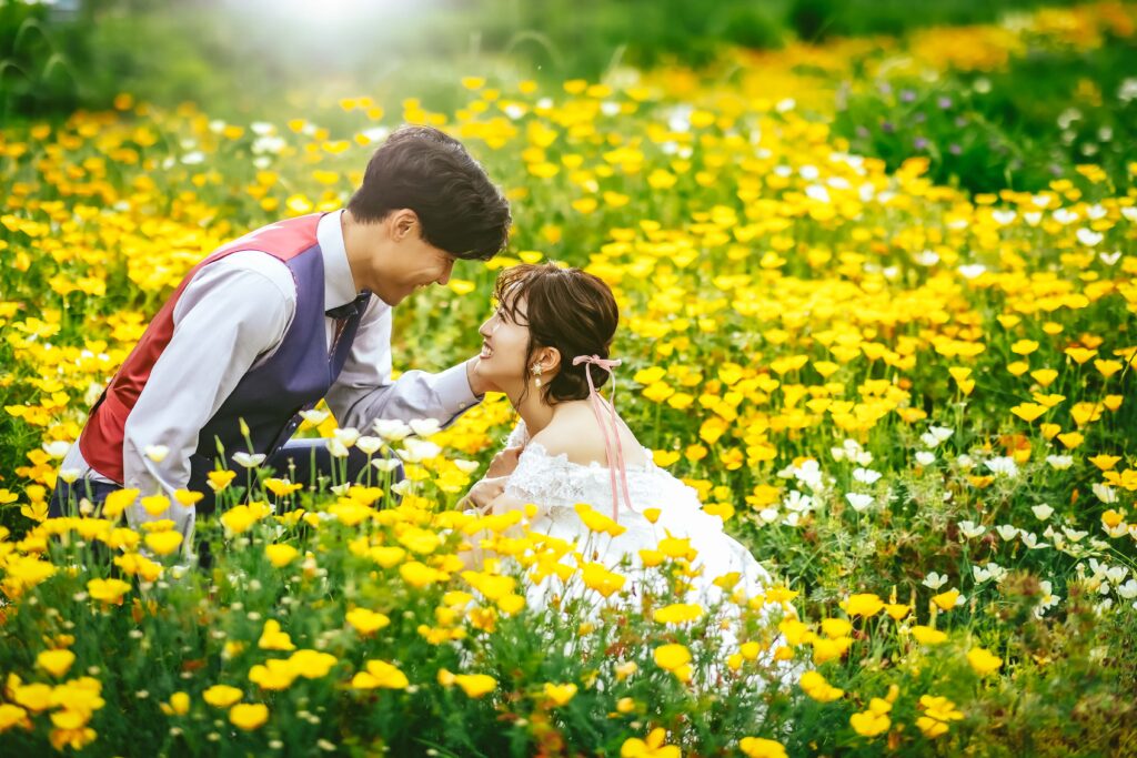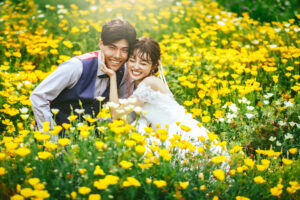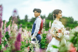 群馬県安中市に広がる**アイリスの丘**は、季節ごとにさまざまな花が咲き誇る、開放感あふれるお花畑。やわらかな光、空へと続く丘のライン、風に揺れる花々に包まれながら、自然体の表情を引き出してくれるロケーションです。