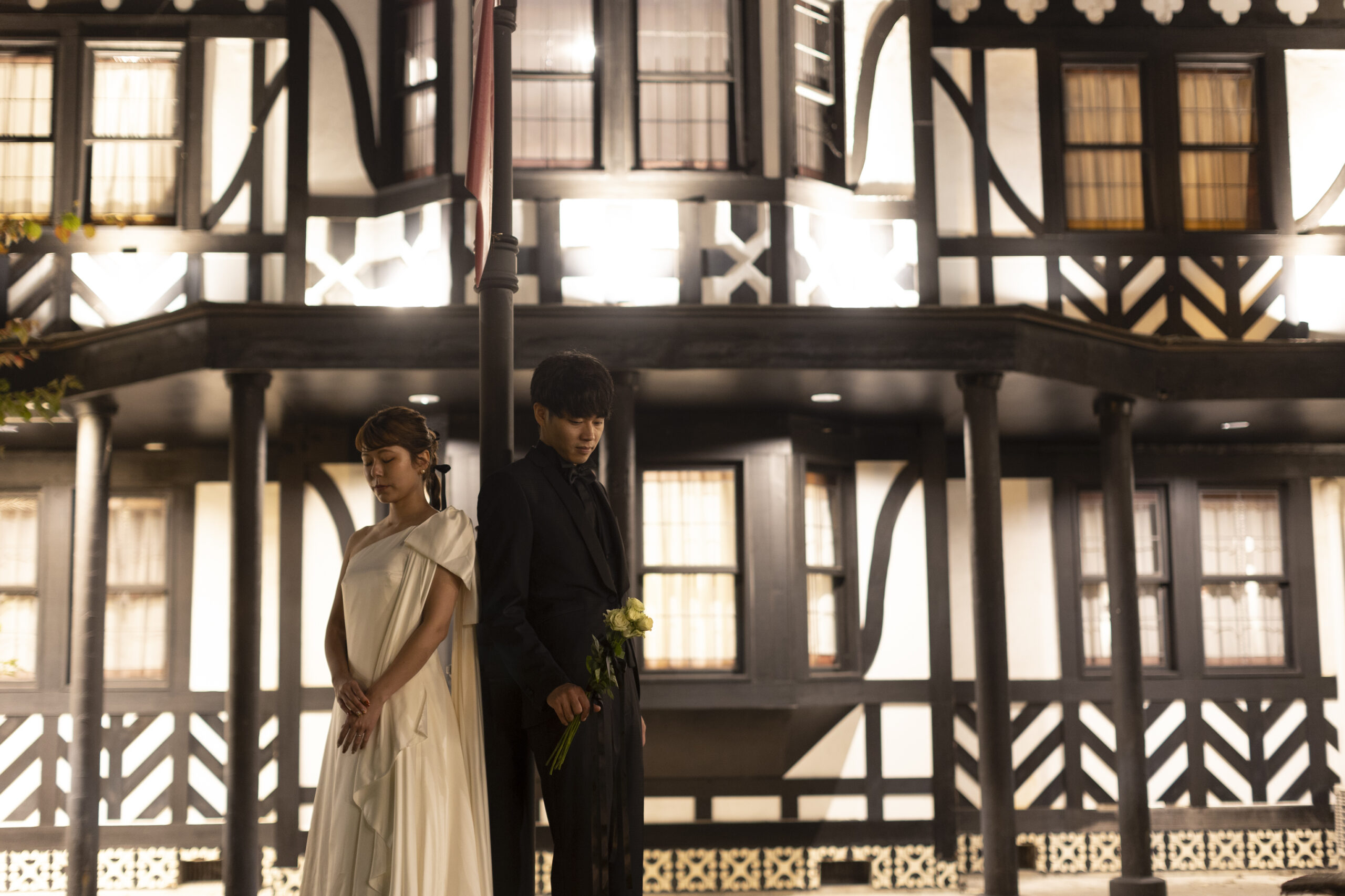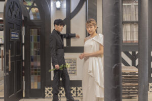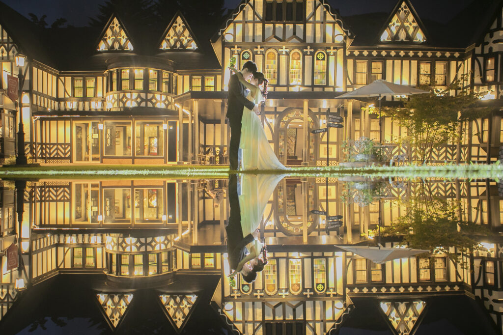 屋根、白い壁、やわらかな曲線。ロンギングハウスの建物は、どこを切り取っても絵になる佇まい。庭に広がる緑や季節の花々が、背景として主張しすぎることなく、ふたりの距離感や空気感を美しく引き立てます。まるで映画のワンシーンのような、温度のある写真が残せます。