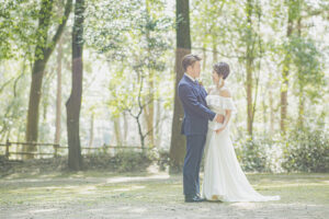 高崎市に広がる、緑豊かなオアシス「群馬の森」。そびえ立つ巨木の間から差し込む柔らかな木漏れ日、季節ごとに表情を変える広大な芝生。ここは、作り込まれたスタジオでは決して出せない「呼吸する自然」が主役のステージです。飾らない笑顔も、少し背伸びしたドラマチックなポーズも、この深い森が優しく包み込んでくれます。