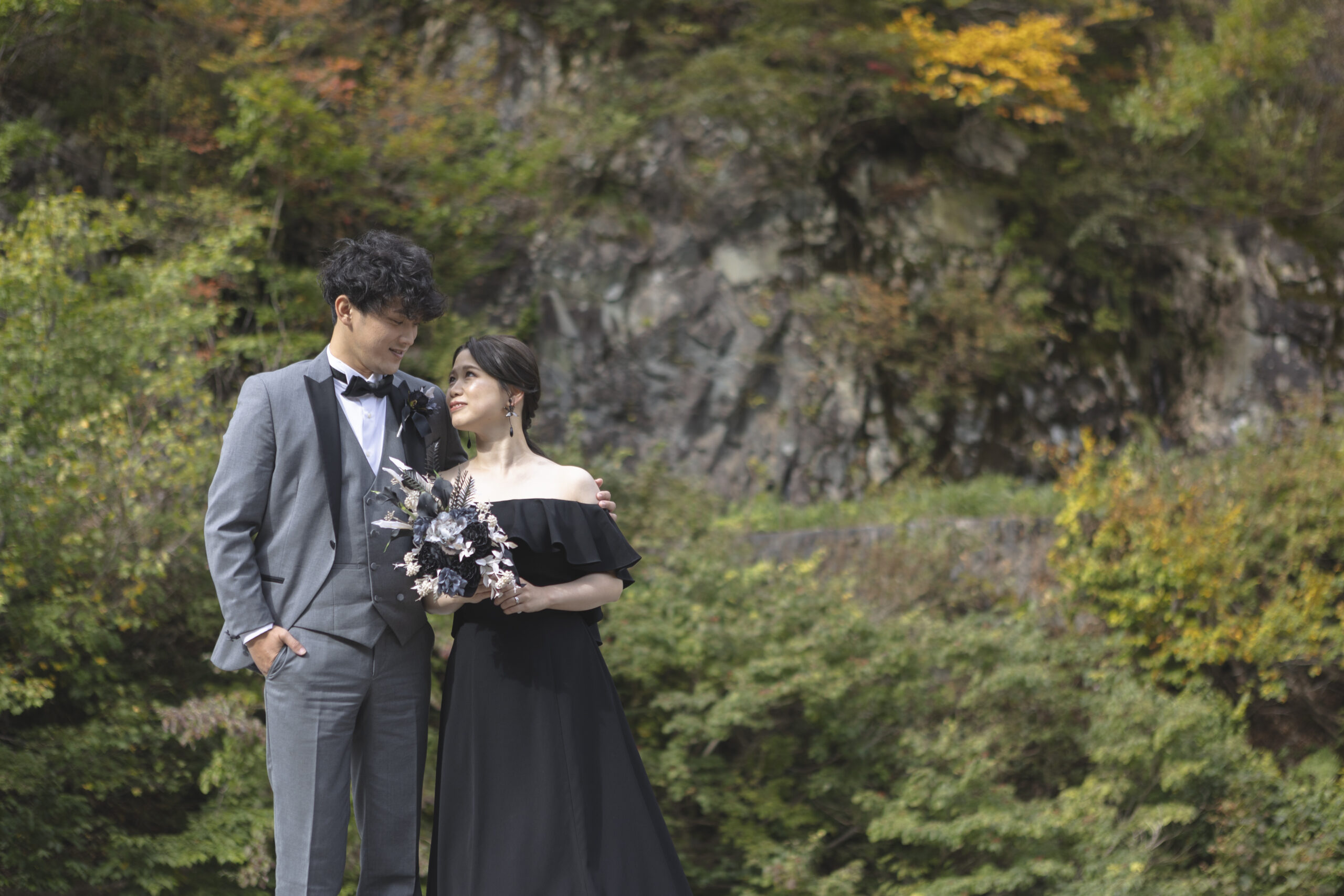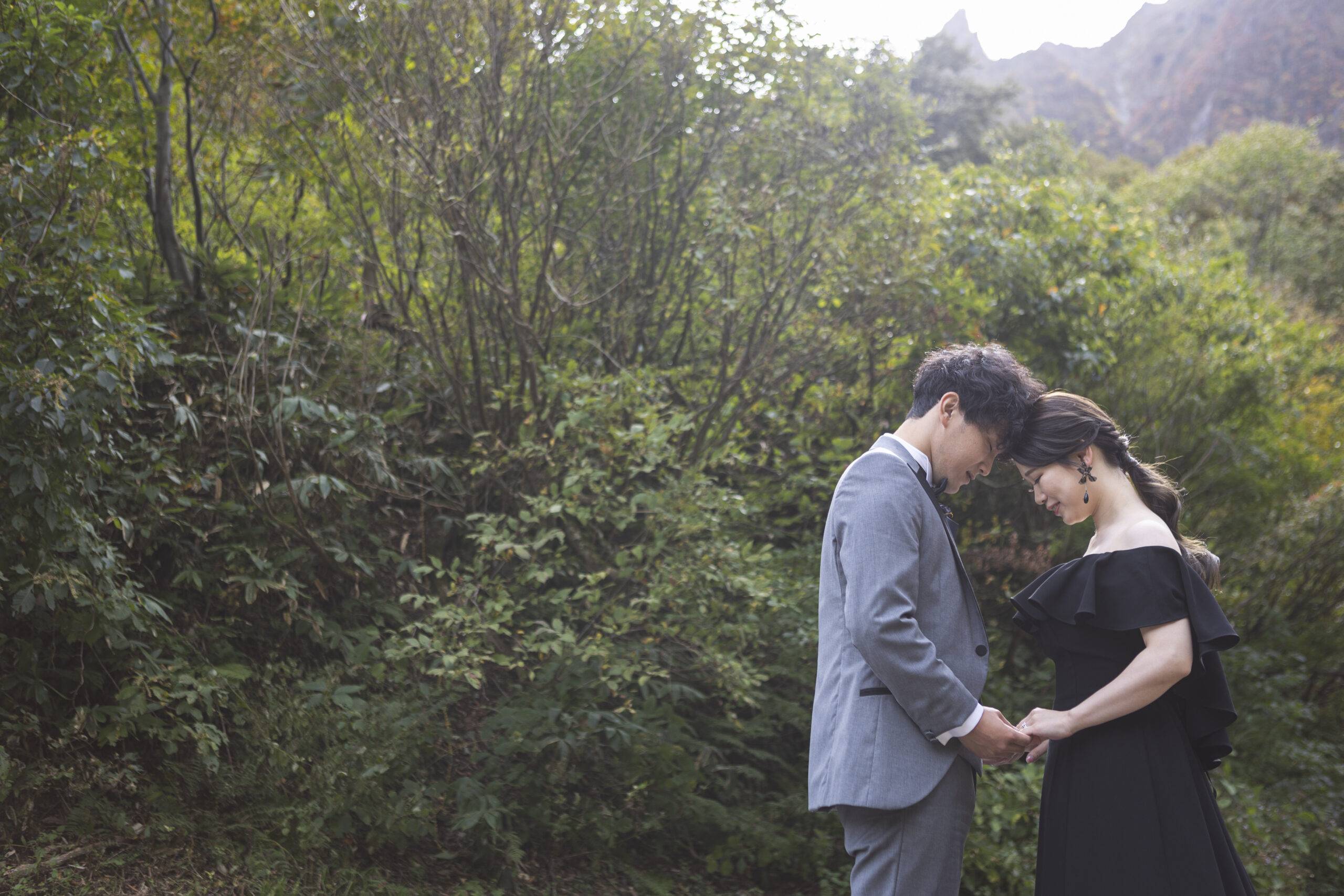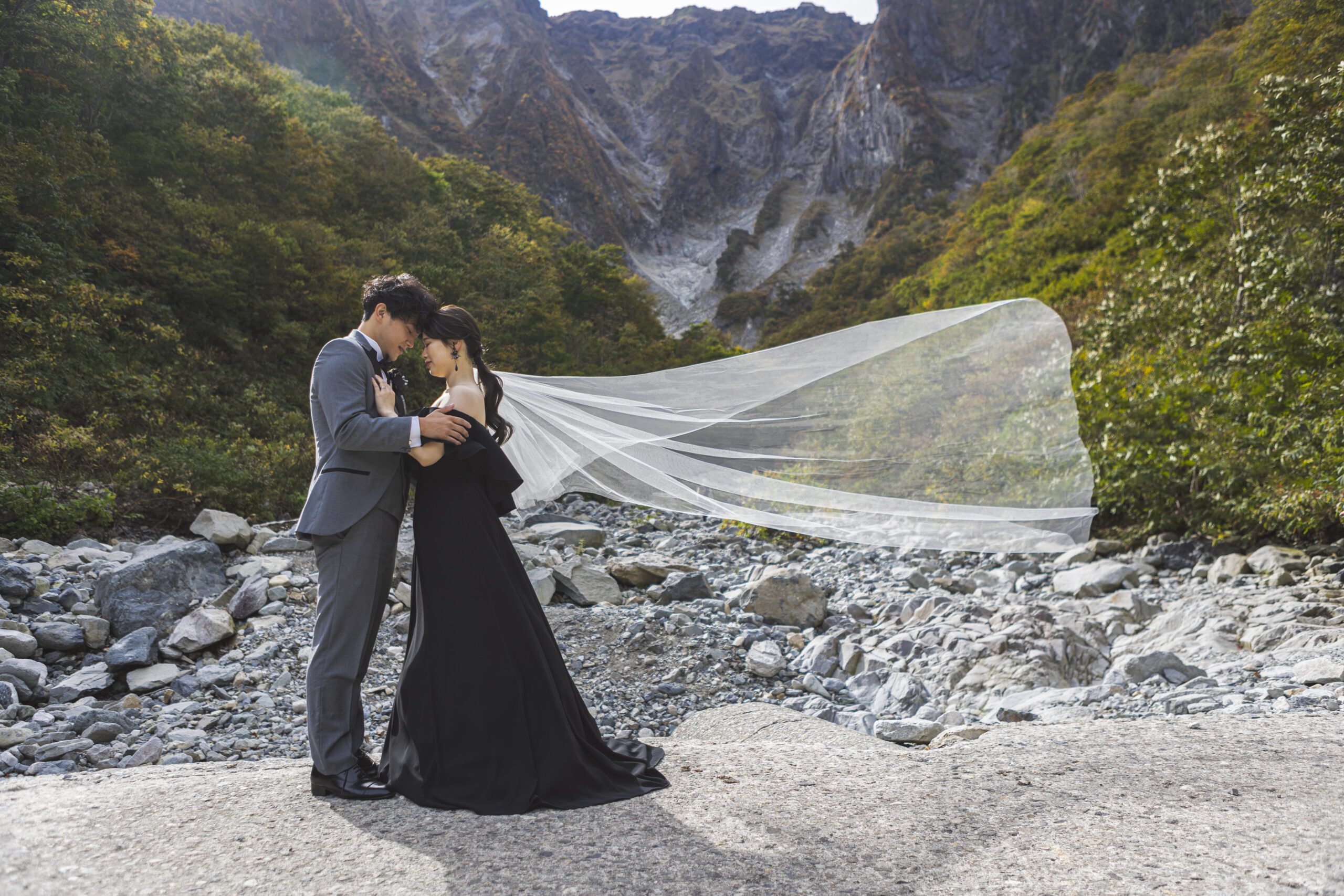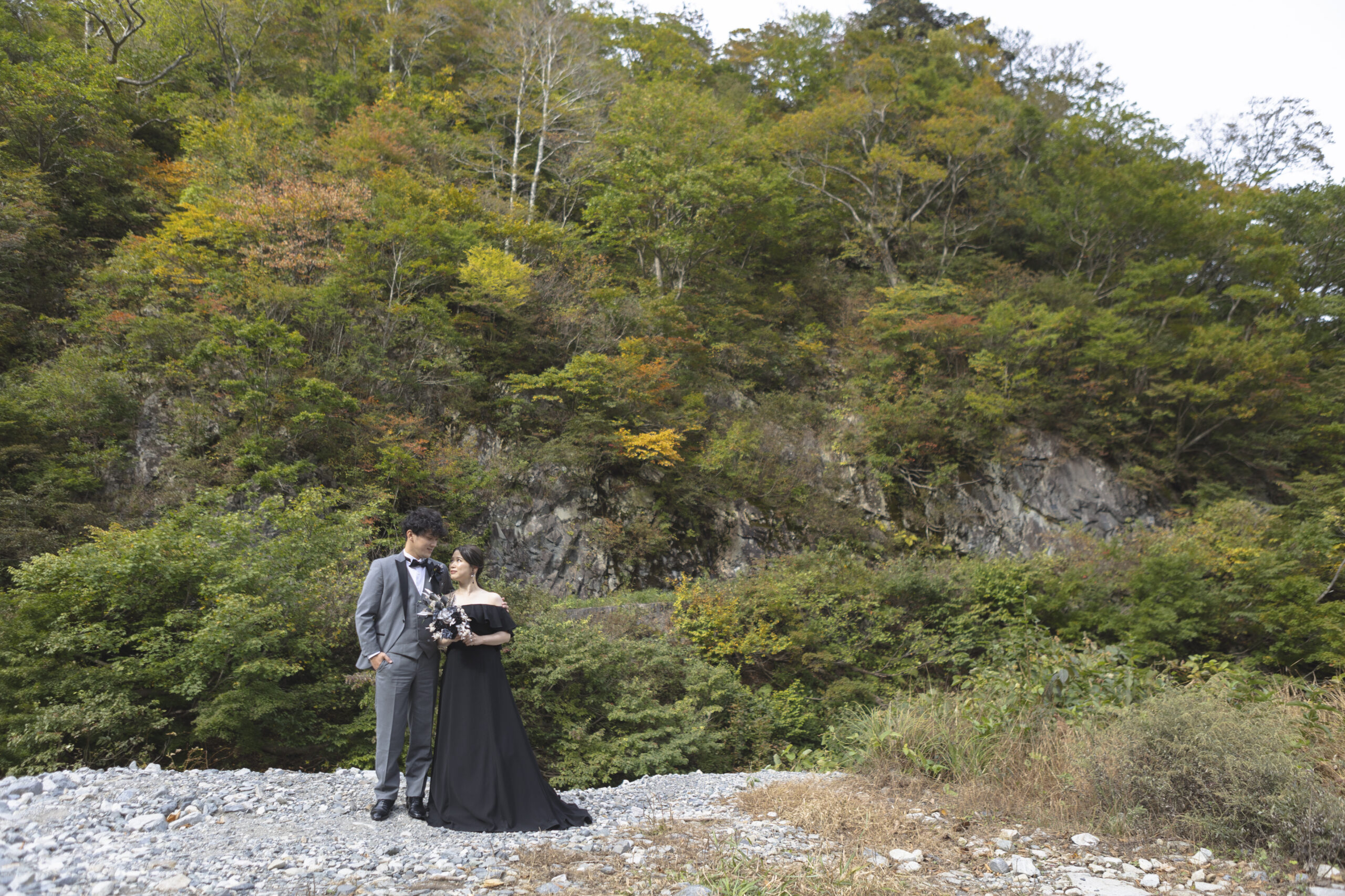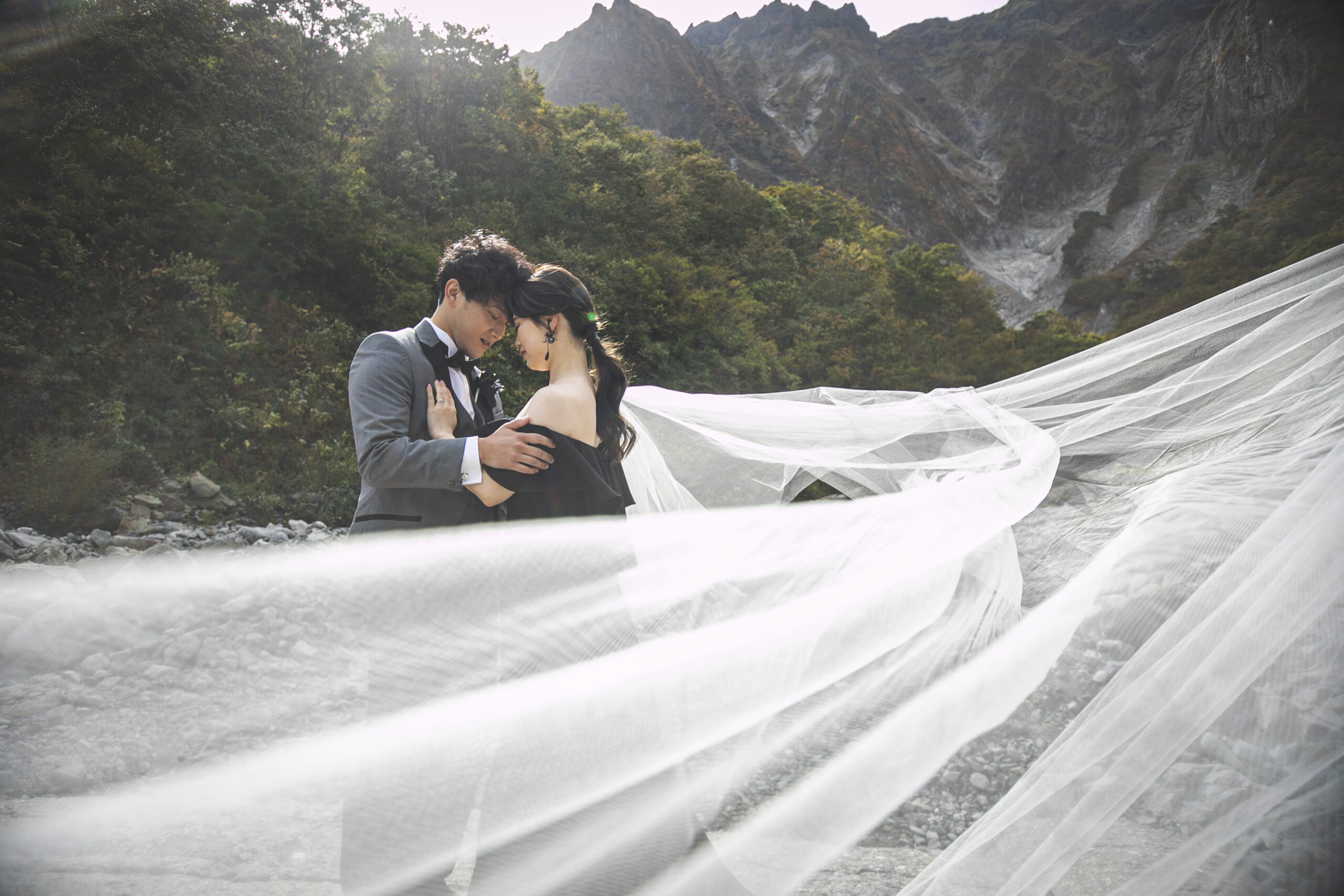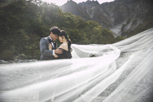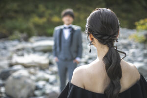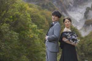 谷川岳の荒々しくも美しい岩壁が、天高くそびえる「一ノ倉沢出合」。そこにあるのは、数万年の時をかけて削り出された、大自然の彫刻です。凛と張り詰めた空気、万年雪を抱く岸壁、そしてどこまでも透明な谷川のせせらぎ。この圧倒的な「本物」の風景は、おふたりの誓いを、より強く、より深く、永遠のものへと昇華させてくれます。