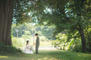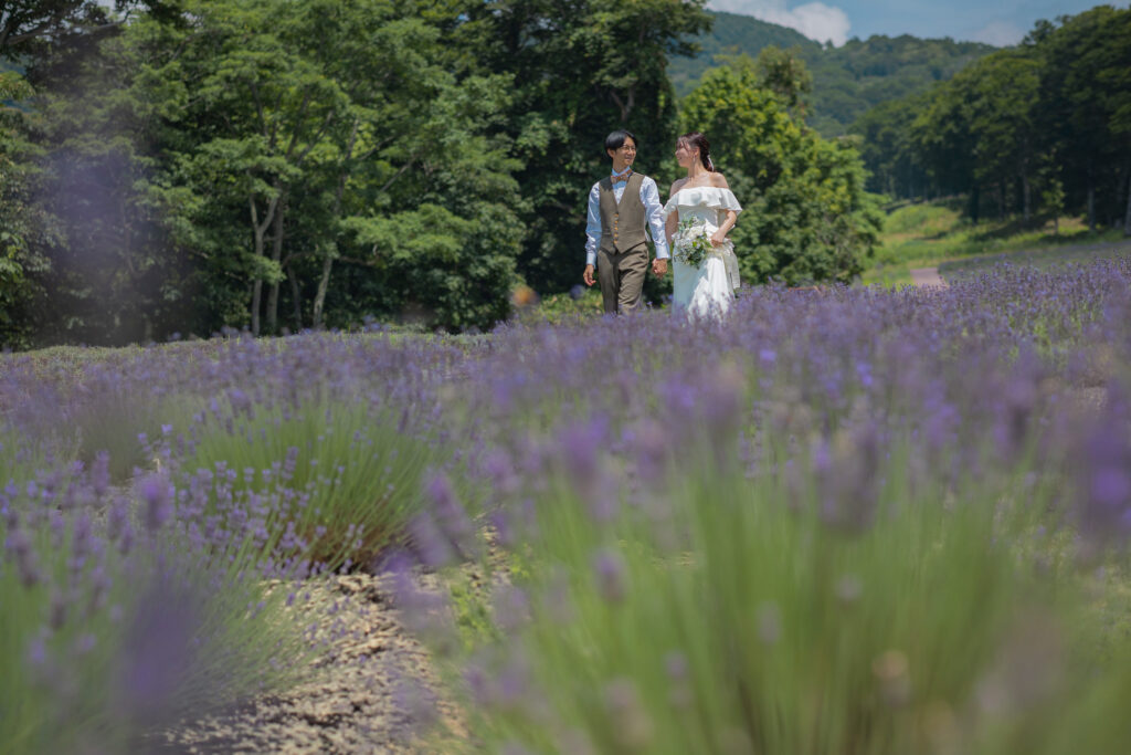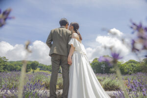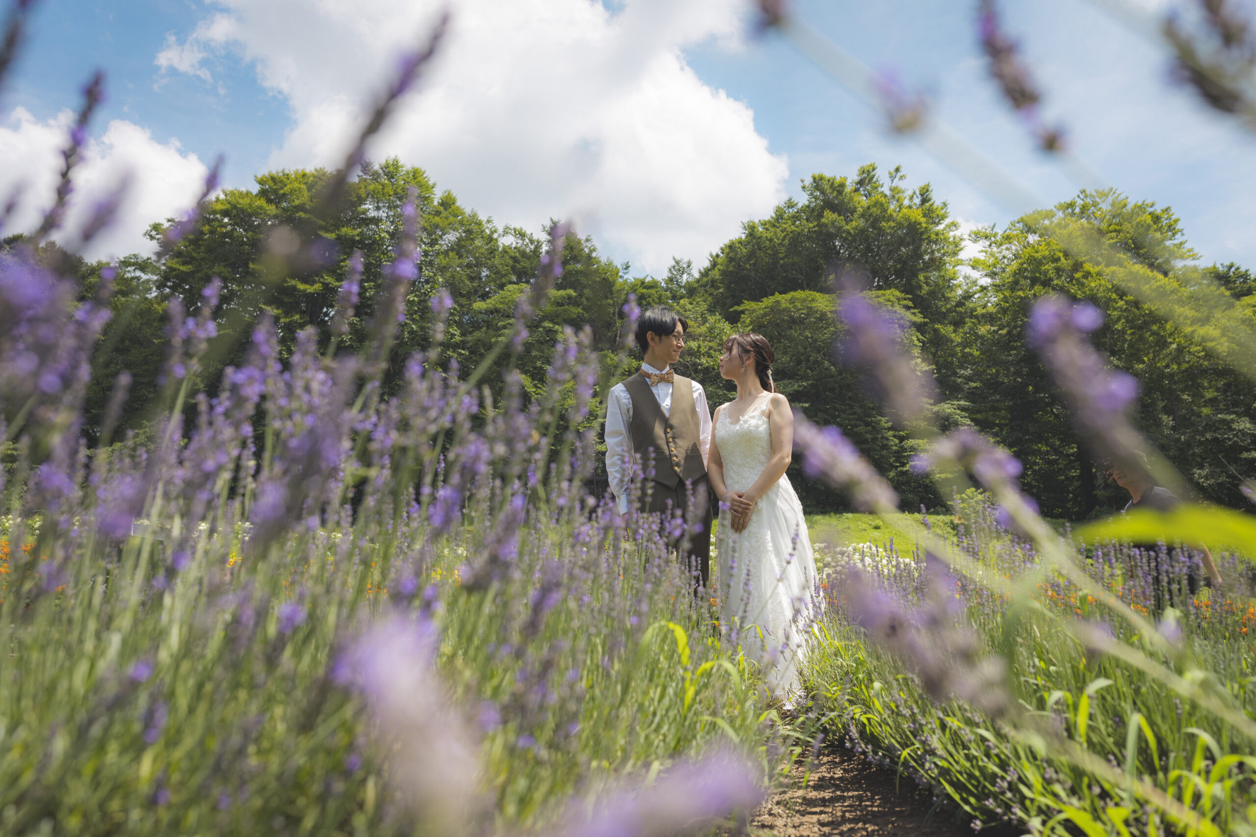 真夏の太陽が輝く季節、高原を渡る風はどこまでも涼やか。たんばらラベンダーパークに広がるのは、関東最大級・5万株のラベンダーが描き出す「紫のじゅうたん」です。目に鮮やかな色彩と、ふんわりと漂う優しい香り。都会の喧騒を離れた「天空の花園」で、おふたりの笑顔が最もナチュラルに輝く瞬間を、永遠の一枚に閉じ込めます。