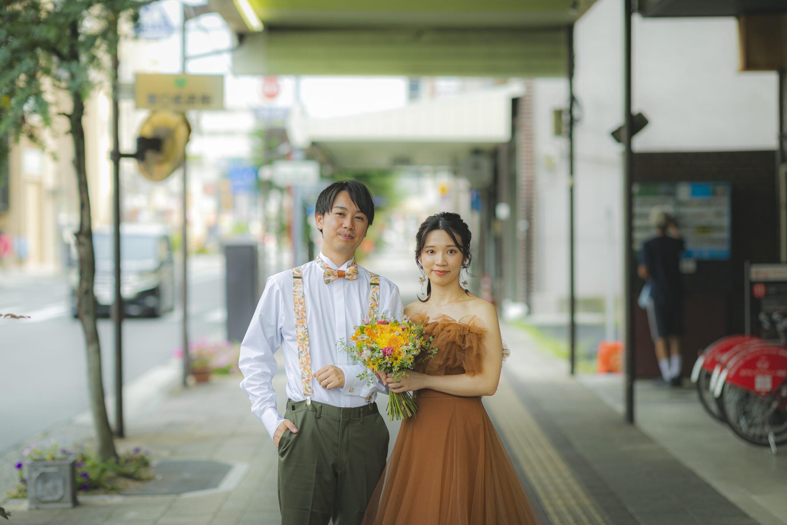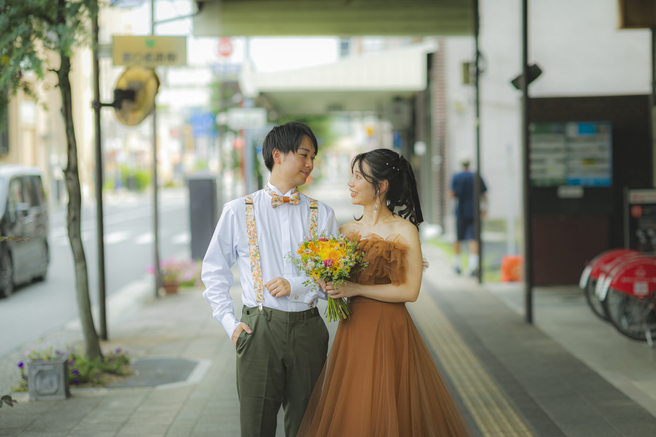 決められたポーズよりも、ふとした瞬間の笑顔がほしい。いつものデートのように、手を繋いで歩きながら。高崎の街角には、映画のセットのようなレトロな路地裏や、洗練されたアーバンスポットが溢れています。通り過ぎる風、街の音、そしておふたりの笑い声。等身大の「今」を、一番おふたりらしいカタチで残す。それが高崎街ブラ・フォトウェディングです。