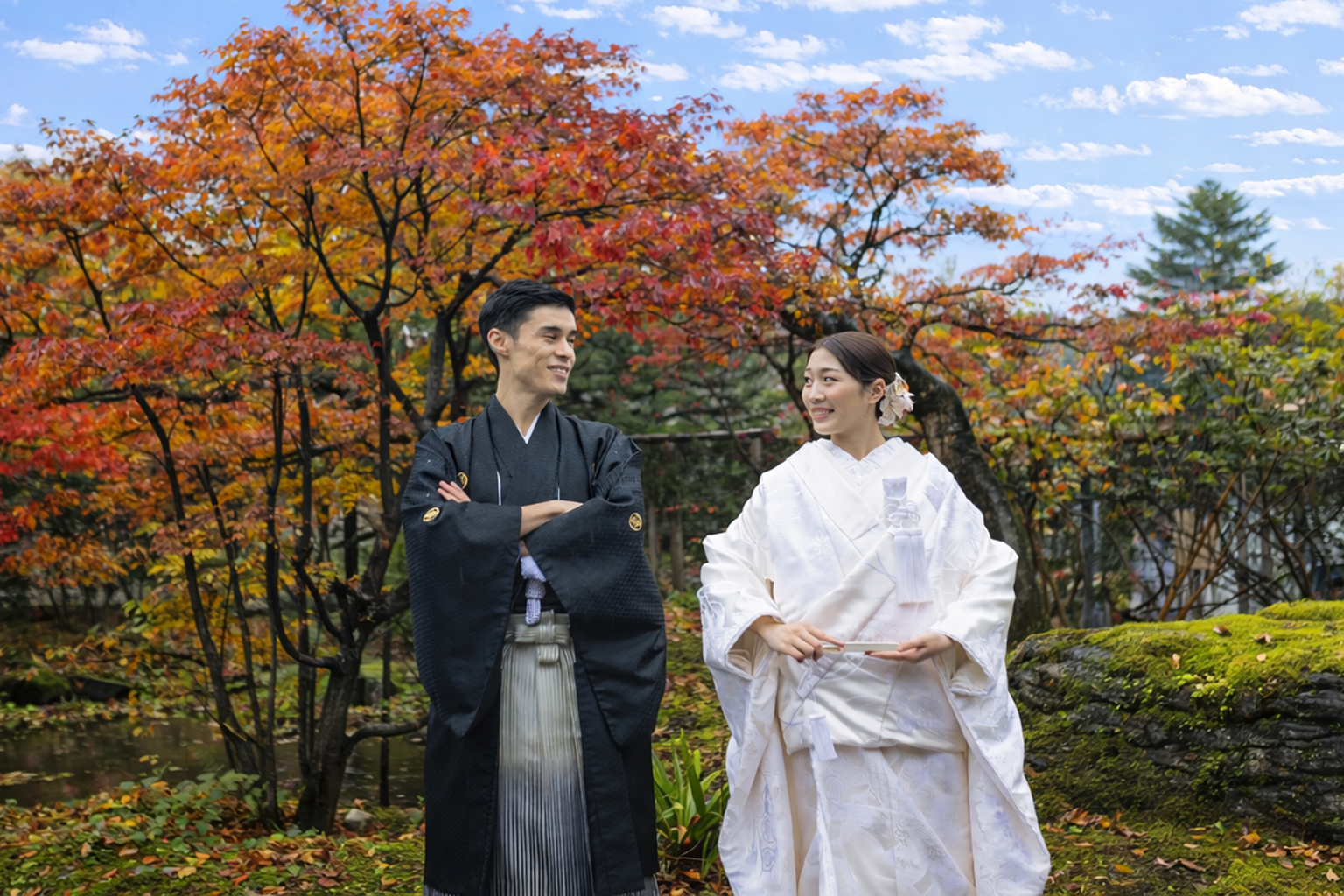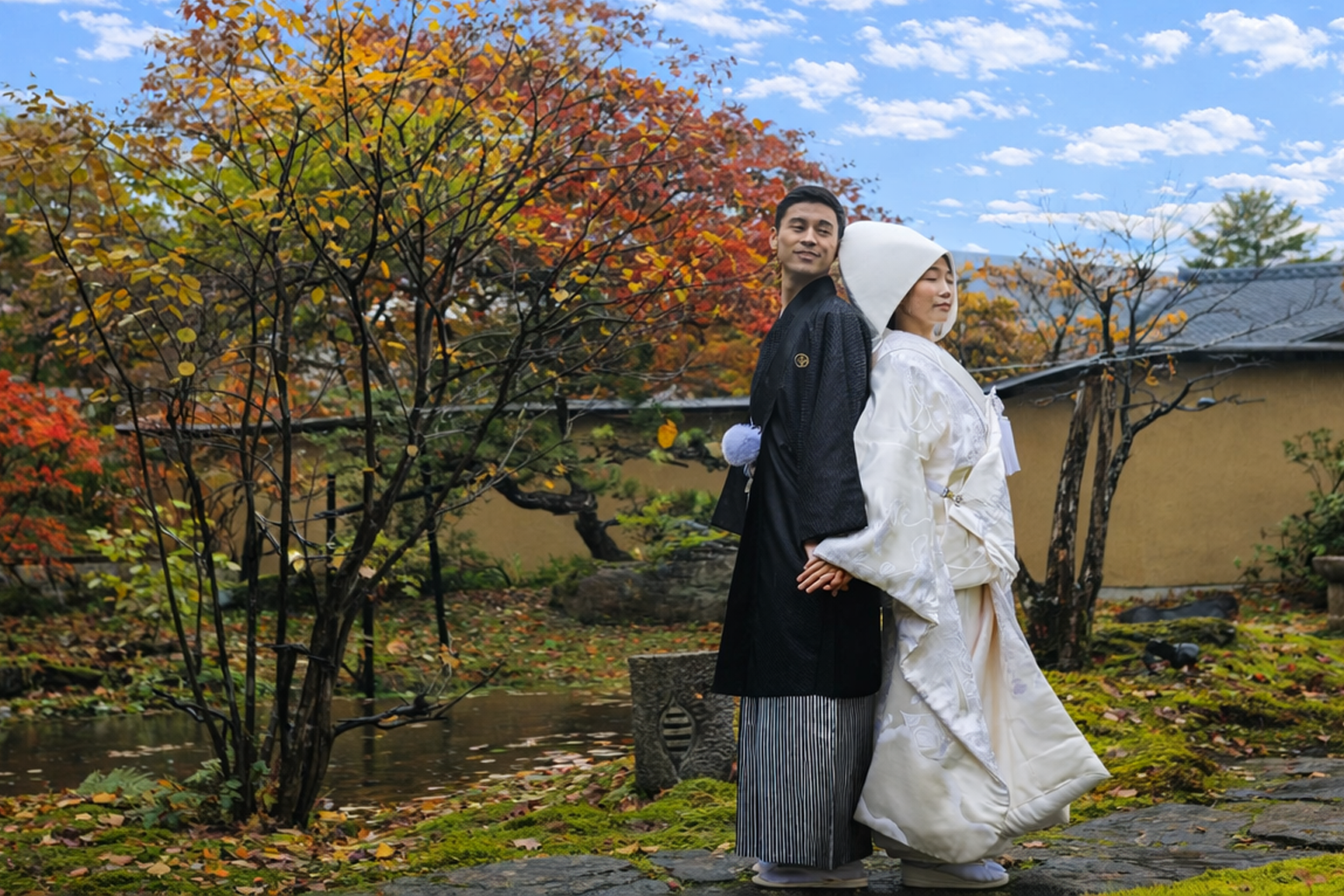 館内での落ち着いた撮影から、庭園や自然の中での開放的な一枚まで。一つの場所で、多彩な表情を残せるのも魅力。
