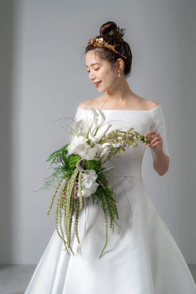 〇王道のAラインを、今っぽくスタイリッシュに着こなしたい花嫁